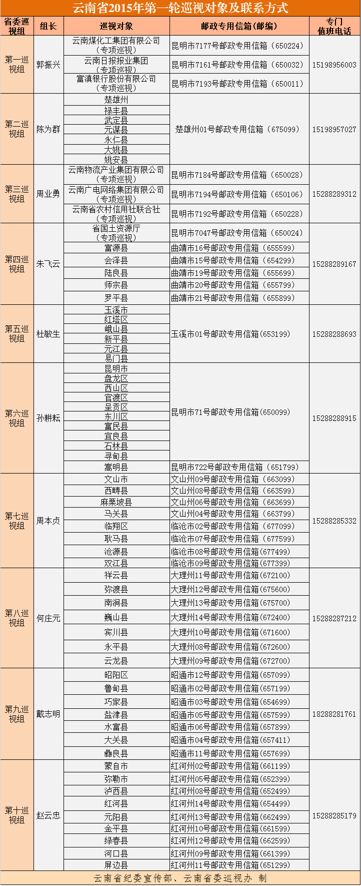 省委10个巡视组2015年第一轮巡视对象及联系方式