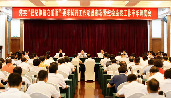 江西省召开落实“把纪律挺在前面”要求先行先试工作动员部署暨纪检监察工作半年调度会 7月2日,江西省召开落实“把纪律挺在前面”要求先行先试工作动员部署暨纪检监察工作半年调度会。省委常委、省纪委书记周泽民出席会议并讲话。 会议指出,围绕落实“把纪律和规矩挺在前面”要求,在省纪委机关和部分单位开展先行先试工作,这是一项重大政治任务,省委对此高度重视。要深刻领会“把纪律和规矩挺在前面”要求的精神实质和方向性、原则性要求,坚持因地制宜,探索有效机制和可行办法,重点在推进思想观念变革、实施业务流程再造、转变监督执纪方式、加强执纪能力建设等方面来谋划和落实,真正让纪律有力量,让规矩起作用,为深入建设风清气正政治生态提供坚强纪律保证。相关单位党委(党组)要加强对先行先试工作的领导,落实工作责任,大胆实践,搞好统筹指导和总结提炼,为明年全省纪检监察系统全面推行提供有益经验。 会议强调,要保持政治定力,强化完成纪委全会任务意识,突出重点,以“钉钉子”精神持续发力,确保省纪委五次全会部署的工作任务全面完成。(江西省纪委)
