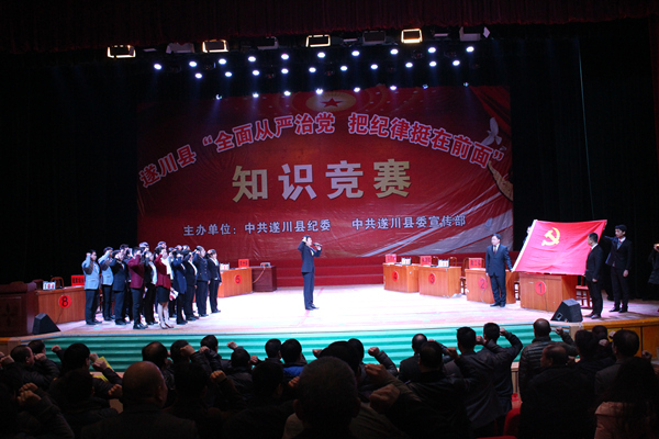 江西省:江西省遂川县举办“全面从严治党、把纪律挺在前面”知识竞赛。赛前,参赛者与观众一起重温入党宣誓词,唤醒党员党章意识,永葆党员本色。