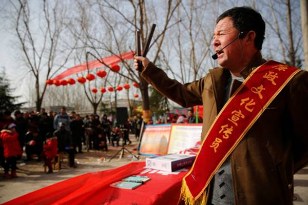 2月20日,农历正月十三,“中国宝丰马街书会”在河南省宝丰县精彩开幕,来自全国各地的说唱艺人负鼓携琴汇聚于此,以天作幕,以地为台,以曲会友,亮书、卖书。京韵大鼓、山东琴书、三弦书等40多种曲艺曲种和上千部传统及现代曲目在这里集中展现。