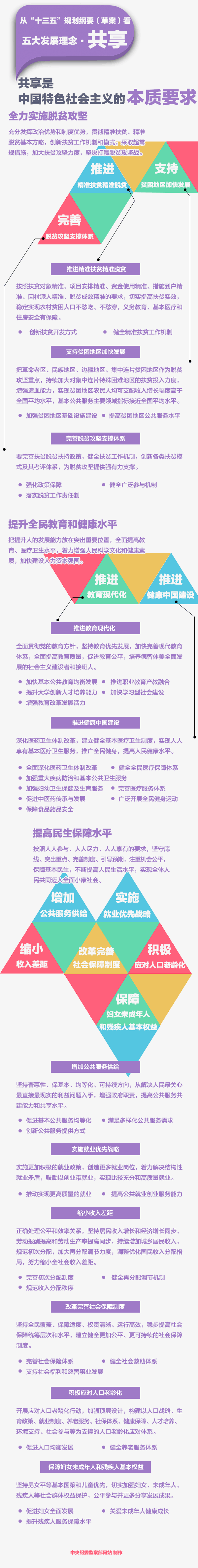 习近平总书记重要论述 全面建成小康社会,最艰巨最繁重的任务在农村、特别是在贫困地区。没有农村的小康,特别是没有贫困地区的小康,就没有全面建成小康社会。 《习近平到河北阜平看望慰问困难群众时强调 把群众安危冷暖时刻放在心上 把党和政府温暖送到千家万户》(2012年12月31日《人民日报》) 全面深化改革,要突出改革的系统性、整体性、协同性,使改革成果更多更公平惠及全体人民。 《习近平在中共中央政治局第二十次集体学习时强调 坚持运用辩证唯物主义世界观方法论 提高解决我国改革发展基本问题本领》(2015年1月25日《人民日报》) 社会建设要以共建共享为基本原则,在体制机制、制度政策上系统谋划,从保障和改善民生做起,坚持群众想什么、我们就干什么,既尽力而为又量力而行,多一些雪中送炭,使各项工作都做到愿望和效果相统一。 《习近平在浙江调研时强调 干在实处永无止境 走在前列要谋新篇》(2015年5月28日《人民日报》) 广大人民群众共享改革发展成果,是社会主义的本质要求,是我们党坚持全心全意为人民服务根本宗旨的重要体现。我们追求的发展是造福人民的发展,我们追求的富裕是全体人民共同富裕。改革发展搞得成功不成功,最终的判断标准是人民是不是共同享受到了改革发展成果。 《征求对中共中央关于制定国民经济和社会发展第十三个五年规划的建议的意见 中共中央召开党外人士座谈会 习近平主持并发表重要讲话》(2015年10月31日《人民日报》) 坚持共享发展、着力增进人民福祉,从增加公共服务供给、实施脱贫攻坚工程、提高教育质量、促进就业创业、缩小收入差距、建立更加公平更可持续的社会保障制度、推进健康中国建设、促进人口均衡发展8个方面展开。 《关于<中共中央关于制定国民经济和社会发展第十三个五年规划的建议>的说明》(2015年11月4日《人民日报》) 坚持共享发展,就是要坚持发展为了人民、发展依靠人民、发展成果由人民共享,使全体人民在共建共享发展中有更多获得感,朝着共同富裕方向稳步前进。 《深化合作伙伴关系 共建亚洲美好家园——在新加坡国立大学的演讲》(2015年11月7日) 我国正处于并将长期处于社会主义初级阶段,我们要根据现有条件把能做的事情尽量做起来,积小胜为大胜,不断朝着全体人民共同富裕的目标前进。 《习近平在省部级主要领导干部学习贯彻十八届五中全会精神专题研讨班开班式上发表重要讲话强调 聚焦发力贯彻五中全会精神 确保如期全面建成小康社会》(2016年1月19日《人民日报》) 代表委员谈认识 全国人大代表,四川省财政厅党组书记、厅长 王一宏: 要树立共享理念,发挥财税对改善民生的保障力,不断增强人民群众的获得感。要通过公共财政改善民生的政策取向,按照人人参与、人人尽力、人人享有的要求,坚持财政“取之于民、用之于民”的原则,补好民生“短板”。要始终坚守底线,强化多渠道的民生保障机制,在平衡协调各方利益中提升公共财政保障水平,通过作出更有效的制度安排,建立更加公平更可持续的社会保障制度,努力提高民生政策的影响力和有效性。 干部群众说感受 北京朝阳区小食品摊主 周玉山: 我今年38岁,在北京定福庄附近卖鸡蛋灌饼。几年前,我在郑州一家小饭店打工,月收入几百元。如今我的鸡蛋灌饼生意一个月收入能有一万多元。不久前我还在老家买了房子。女儿在朝阳区上小学,学费和书本费全免,女儿能在北京的公立学校上学,这对我们来说是很高兴的事情。感觉作为外来人口,能在北京安顿生活,套句时髦的话,我们也在分享着城市的“红利”。现在,我一位同行的生意,已经从几年前街边鸡蛋灌饼摊子升级为入驻北京第二外国语学院学生食堂的美食窗口。我特希望每一个人都“共享”我们国家改革发展的成果。