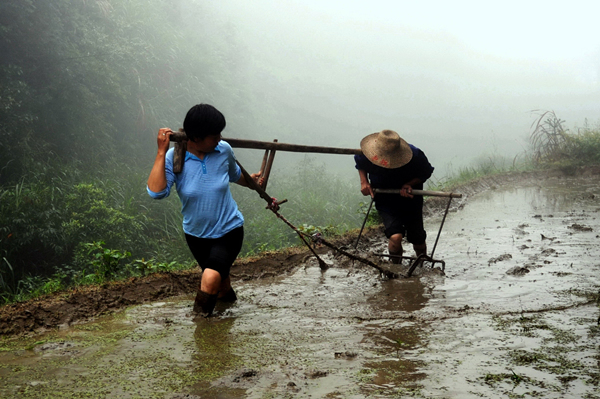 石坑村是典型的“八山一水一分田”地貌,不便机器耕种,村民用自己勤劳的双手在山间开垦出梯田,踏踏实实做事,踏踏实实收获。(江西省遂川县纪委)