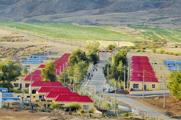 萨尔乌楞村 萨尔乌楞村,全村共56户人家。每家新房的铁皮屋顶上,画上了鲜艳的五星红旗。