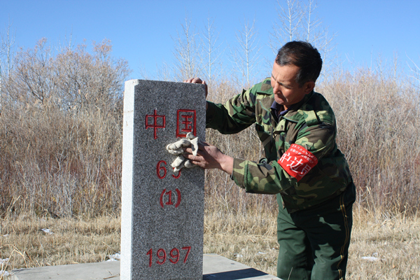 护边员在擦拭界碑 心甘情愿当一名护边员,就要做好祖国边陲的一双“眼睛”,要把对祖国的爱、对生活的爱、对家庭的爱化为动力,投入到这份神圣的工作中。