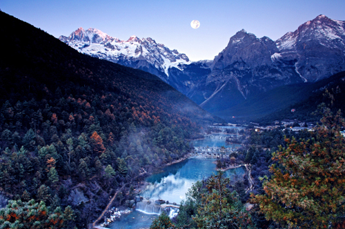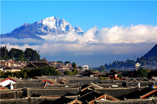 玉龙雪山 常年积雪的玉龙雪山秀丽挺拔,随着时令和阴晴的交替,景观变幻无常,时而云蒸雾涌,时而碧天如水。