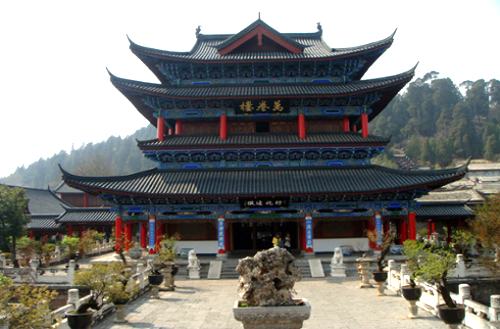 木府万卷楼 万卷楼,这里是学堂和图书馆。楼门上有一幅对联:一座土司府,半部民族史。