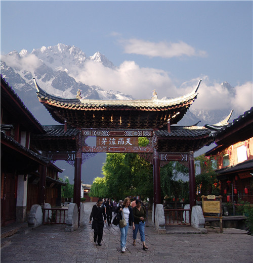 天雨流芳 “天雨流芳”是纳西语音译语,行云流水般书写在丽江木府旁的一座牌坊上,意为“读书去吧”。表明纳西族是一个推崇知识、重视教育的民族,树立此牌坊,意为教导后代子孙不忘读书,勤于学习。