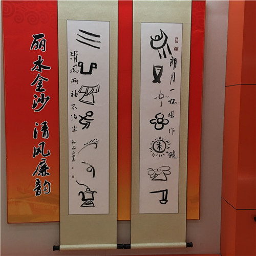 世界记忆遗产——东巴文字 东巴文廉政对联:朗月一怀堪作镜,清风两袖不沾尘。 (云南省丽江市纪委 和彩霞 卢朝忠)