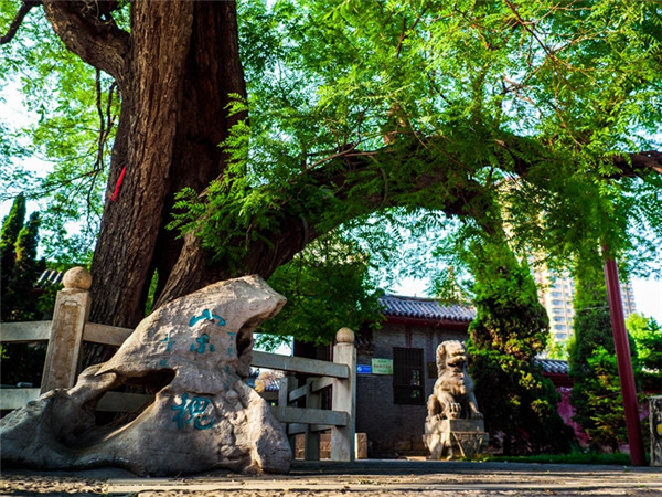 这棵生长在范公祠门口的宋槐历经960多年,传为北宋治平二年由长山知县韩泽为范仲淹修建祠堂时亲手所植。