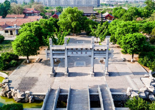 忧乐亭是根据范仲淹的名句“先天下之忧而忧,后天下之乐而乐”建造。亭柱上有对联“忧乐亭中坐怀古,孝水桥畔卧吹笙”。
