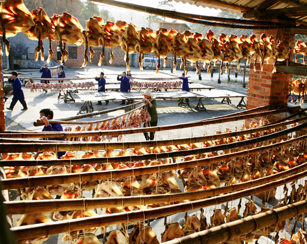 沙地板鸭 赣县素有“中国板鸭之乡”的美誉。沙地板鸭是赣县汉族传统名吃,迄今已有二千多年的历史。