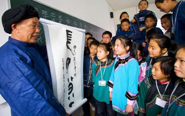 水书传承进课堂 作为全国唯一的水族自治县,贵州省三都县为水书传承做了大量工作,邀请水书先生走进课堂传授水书。