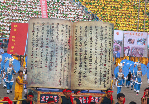 水书,是水族的文字,也是水族用于记载早期天文、历法及各种宗教事象的文化典籍。其形状类似甲骨文和金文,全靠民间水书先生代代手抄和口传心授,从而得以在民俗中存活并传承下来。水书在水族群众建房造屋、婚丧嫁娶中仍发挥重要作用,是水族社会生活的“百科全书”。