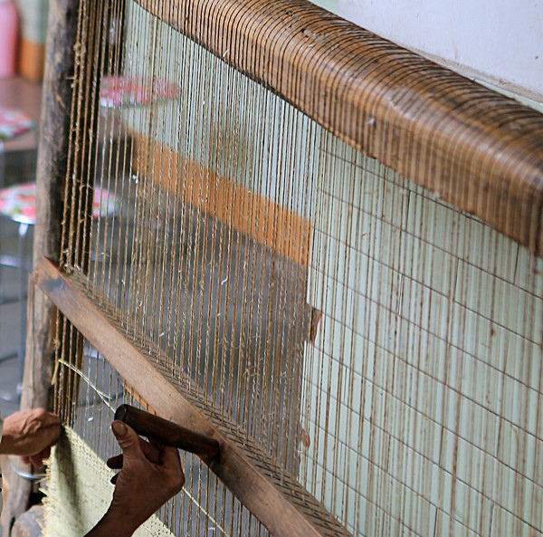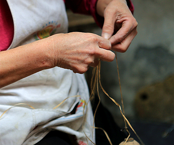 分麻 穿草席的过程是细致而繁琐的,分麻、吊麻、提扣、穿草、压扣,正是这一环又一环才编织出了儿时夏季的那抹清香。