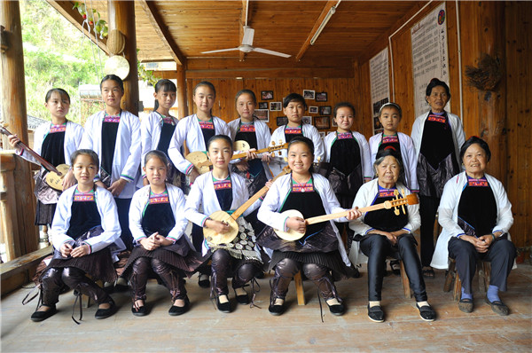 开学第一天,贵州省黔东南州从江县高增乡的侗族孩子们在从江生态文化社学侗族大歌、侗族琵琶。(贵州省黔东南州纪委)