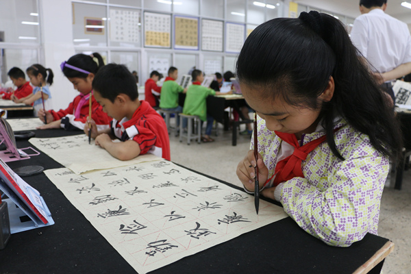 江苏省滨海县一名小学生在书法课上习字。“廉以立身,俭以养德”,这些做人做事的道理已悄然在儿童心中生根发芽。(江苏省盐城市滨海县纪委)