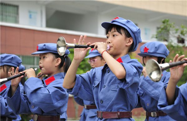 8月31日,江西省于都县长征源小学开启了新学期的第一课,通过让学生吹奏红色歌曲,听长征故事,让孩子们对红军长征加深了解。(江西省赣州市于都县纪委)