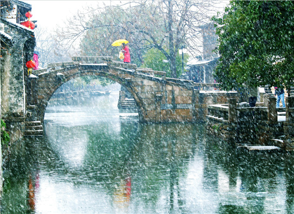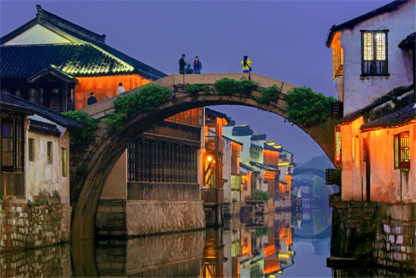 江苏·双桥 双桥位于江苏省昆山市周庄镇,是指位于周庄中心位置的世德和永安两桥。建于明代,两桥相连,样子很像古代的钥匙,又称“钥匙桥”。(江苏省昆山市文化广电新闻出版局 公冶玉坤)