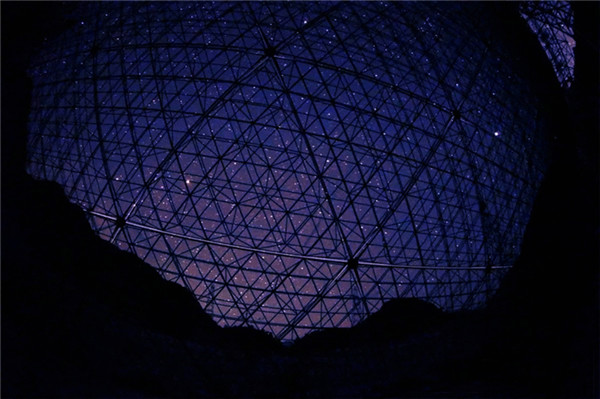 从“天眼”底部的大窝凼洼地向上仰望望远镜的框架结构