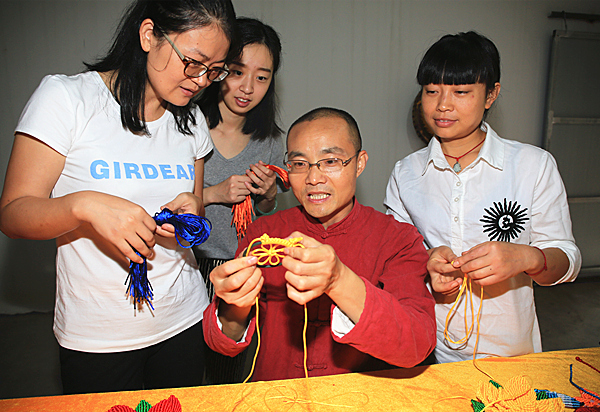 绳结艺人授课 三尺彩绳作为一项历史悠久的民间艺术,如今,不仅揉入了对现代生活的诠释,也延续着爱与美的传承。 (成都市纪委)