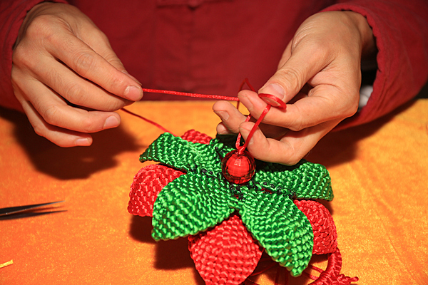 绳结兴起于唐宋、盛于明清。在悠久的历史和漫长的文化沉淀中,传承了中华民族特有的文化精髓。一根根数尺见长的彩绳,在慧心巧手下绾、结、穿、缠、绕……编织出精美世界,它不仅是美的形式和巧的结构展示,更是一种自然灵性与人文精神的表露。