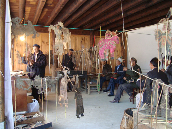 皮影表演 历史上固东皮影极为繁盛,刘家寨皮影作为固东皮影的代表,是迄今为止腾冲唯一保持不间断演出活动的民间皮影组织。2011年被国务院公布为第三批国家级非物质文化遗产名录。