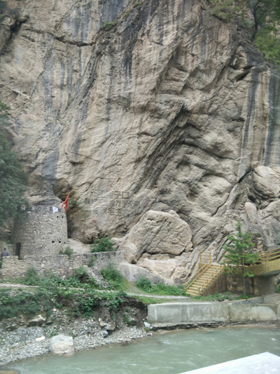 腊子口战役遗址 腊子口峡谷险要处宽约8米,长不过30余米,两面绝壁如刀劈斧削,旁边筑有坚固的碉堡。