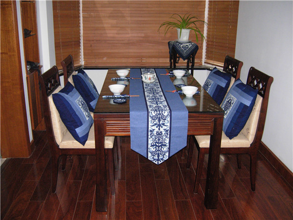 喜相逢桌旗系列 蓝印花布博物馆申报的南通蓝印花布印染技艺,被文化部列入“首批国家级非物质文化遗产”保护项目。