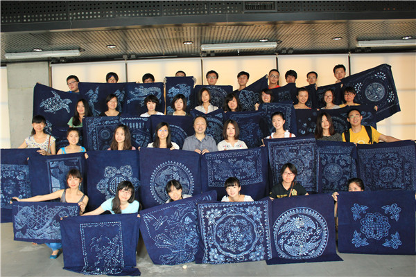 蓝印花布年轻传承者 如今,南通蓝印花布博物馆正在培养蓝印花布年轻传承人,让他们亲身感受蓝白花布的艺术魅力。 (江苏省南通市纪委)