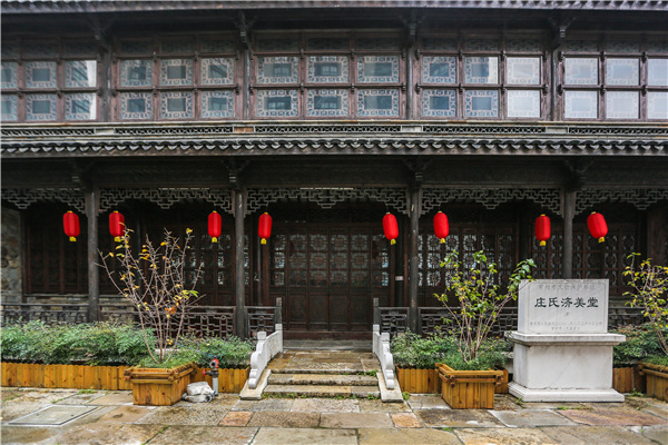 民元里1号小景 京杭大运河汩汩的河水流淌经过毗陵驿后,来到古老的文亨桥东。这里有一段壮丽的明城墙,城墙对面的西瀛里和延陵西路地段正是“西庄”的旧址所在地。旧时,常州城有“庄一角”之誉,是指庄起元家族建造的一大片庄氏宅第占了常州古城西南一角。庄起元共有5子,他在西门织机坊除自住“济美堂”外,还并排建造了“赐瓯”“芳晖”“星聚”“维祺”等堂,由其5子分住各堂。后因常州旧城改造,西庄连片的明清古建筑群“济美堂”“星聚堂”“传胪第”等集中重建在西瀛里文物保护区民元里1号。 “济美堂”