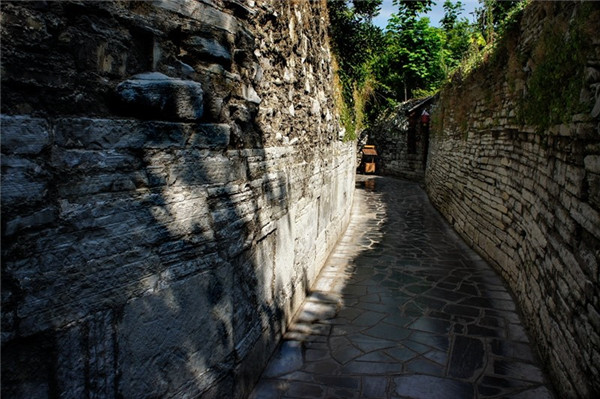 背街 背街是青岩最具特色的一条石巷,街边是层层片石垒起的院墙,路面的青石板经过几百年的冲刷磨砺,如镜面般光可鉴人,路窄而幽静,给街巷带来一种独特的时空感与神秘感。