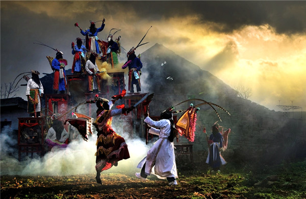 古镇居民表演傩戏 (贵州省贵阳市花溪区纪委 梁国同)