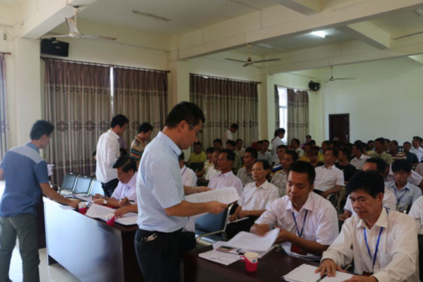 巡察组工作人员向镇、村(社区)干部发放调查问卷