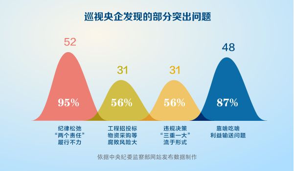 2015年11月23日,中央政治局召开会议听取了关于巡视55家国有重要骨干企业有关情况专题报告。会议指出,要用好巡视成果,落实党的十八届三中、四中、五中全会部署的改革任务,坚持效果导向和问题导向相结合,敢于破除体制机制弊端,发挥改革的突破性和先导性作用,为国有企业发展提供持续动力。 第三步: ■ 时间:2016年 ■ 轮次:第十一轮 ■ 方式:专项巡视 中央部门是党的路线方针政策的执行者、各个系统的领导者。中央部门的工作,直接关乎“五位一体”建设。鉴于其地位重要、权力集中、影响力大,中央部门理应在落实中央精神、坚持党的领导方面走在前列。 对中央部门和企事业单位进行“拉网式体检”,从十八大以来的首轮巡视就已经开始了。2013年,中央巡视组巡视了水利部、商务部等单位党组织;2014年,巡视了科技部、国家体育总局、文化部、环境保护部等单位党组织;2015年,巡视了国家机关事务管理局等单位党组织。2016年,巡视工作节奏更快、力度更大,3轮巡视共覆盖91个单位党组织,占中央全覆盖任务总量的三分之一,继实现对地方、国有重要骨干企业、中央金融单位全覆盖之后,完成了对中央和国家机关巡视全覆盖。
