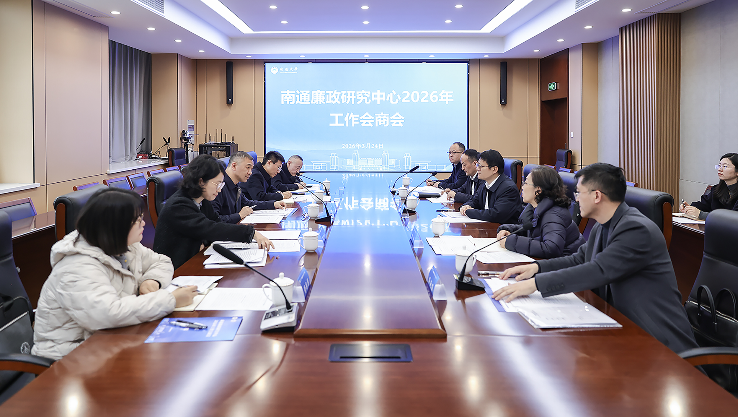 3月24日下午,南通廉政研究中心召开2026年工作会商会。校党委常委、纪委书记、派驻监察专员、南通廉政研究中心主任周振修,南通市纪委副书记、监委副主任陈德军出席会议并讲话。南通市纪委常委、秘书长陈四维主持会议。 周振修充分肯定了南通廉政研究中心2025年取得的成绩,并对下一步发展提出三点要求:一是在理论研究上再深化,紧扣纪检监察实践需求,推动研究选题聚焦、研究模式协同、研究成果转化;二是在廉洁文化上再创新,持续提升《廉政文化研究》办刊质量,丰富廉洁文化产品,擦亮特色教育品牌;三是在学科建设上再发力,建强师资队伍,完善课程体系,优化培养机制,不断提升纪检监察人才培养质量。 陈德军表示,南通廉政研究中心将高校的学术优势与纪检监察机关的实践优势充分融合,近年来在平台建设、研究成果、服务实践、校地协同等方面取得了显著成效。他指出,2026年作为“十五五”开局之年,中心要进一步聚焦主责主业,在服务决策咨询上求实效、在深化理论研究上求突破、在成果转化应用上见真章、在凝聚各方合力上出实招,持续提升研究的针对性、实效性和影响力,推动校地协同走深走实。 会上,马克思主义学院院长、南通廉政研究中心常务副主任吴延溢回顾总结了廉政研究中心2025年度取得的成绩,系统介绍了2026年度重点任务安排。与会人员围绕年度重点工作、难点问题进行深入交流,就深化理论研究、推动成果转化、优化协同机制等提出意见建议。 南通市纪委、我校纪委、南通廉政研究中心相关人员参加会议。 (张秀萍/文 陈虹/摄) |