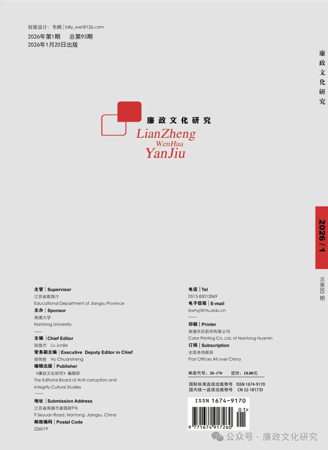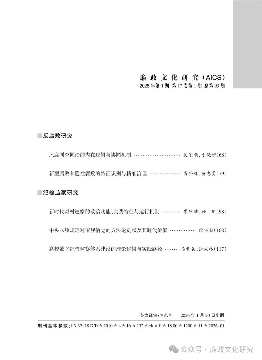《廉政文化研究》2026年第1期目录